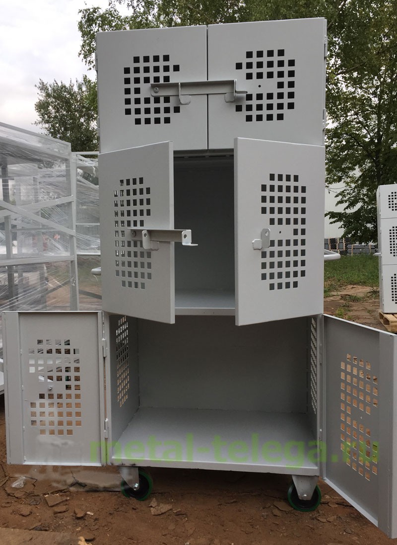 - Боковые стенки и дверцы тележки цельнометаллические, выполнены из листового металла толщиной 1,5 мм с лазерной перфорацией (размер ячейки 20х20 мм)